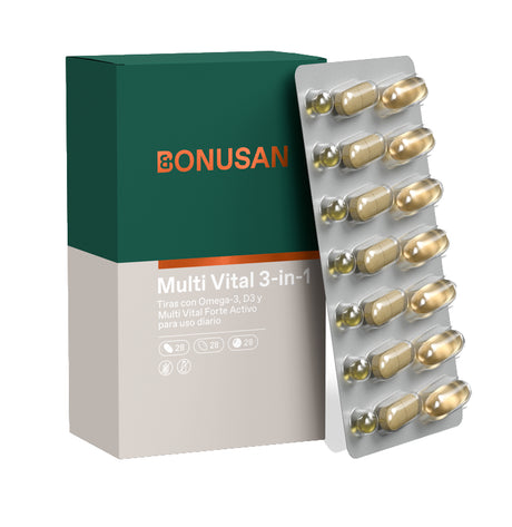 1436€1595€Precio unitario /AgotadoMulti Vital 3-in-1 · Bonusan · 28 comprimidos + 56 perlas