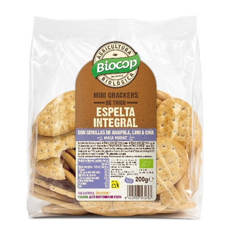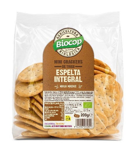 421€558€Precio unitario /AgotadoMini Crackers de Trigo Espelta Integral con Masa Madre · Biocop · 200 gramos