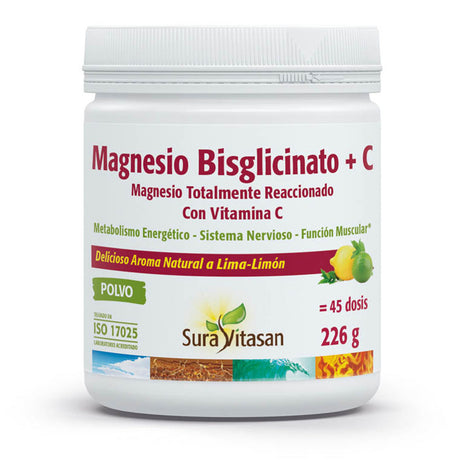 4508€5635€Precio unitario /AgotadoMagnesio Bisglicinato + Vitamina C · Sura Vitasan · 226 gramos