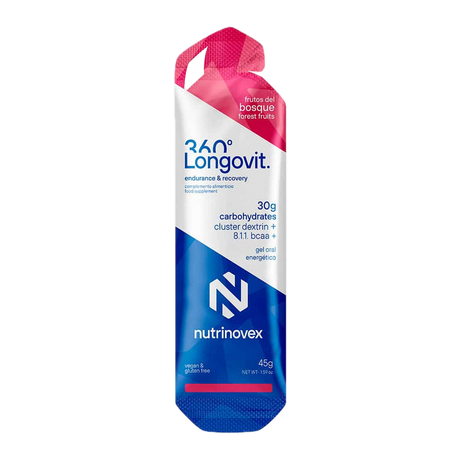 1841€2455€Precio unitario /AgotadoLongovit 360 Gel: Sabor Frutos del Bosque · Nutrinovex · 45 gramos