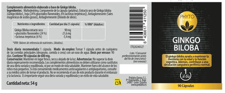 716€795€Precio unitario /AgotadoGinkgo Biloba · Phytofarma · 90 cápsulas