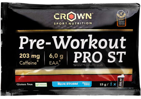 1895€2240€Precio unitario /AgotadoPre-Workout PRO ST: Sabor Blue Storm · Crown Sport Nutrition · 300 gramos
