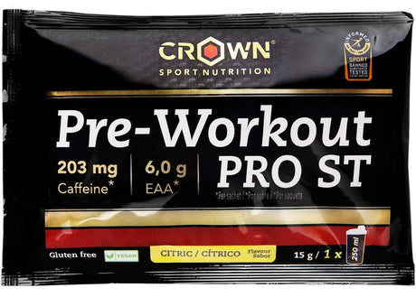 2440€2999€Precio unitario /AgotadoPre-Workout PRO ST: Sabor Cítrico · Crown Sport Nutrition · 300 gramos
