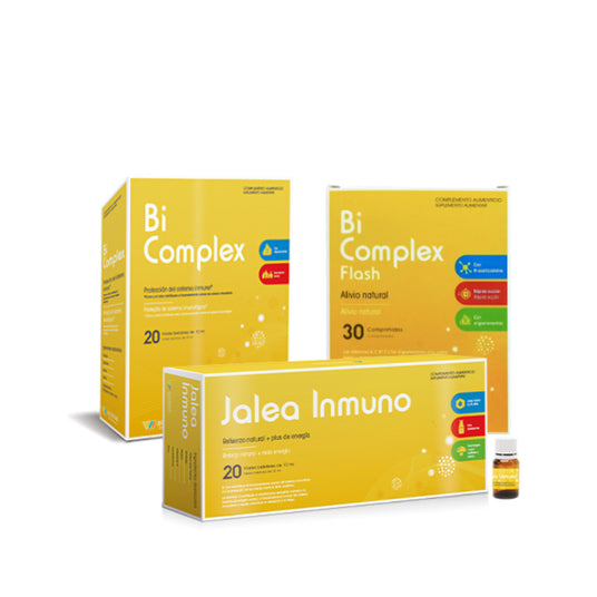 Bi-Complex • 20 viales, es la solución que no talla. Con una fórmula concentrada a base de propóleo, equinácea, acerola, tomillo, manganeso, cobre y zinc es ideal para un refuerzo intensivo. Sus viales monodosis son perfectos para un plan de choque que te ayude a afrontar la temporada con vitalidad.