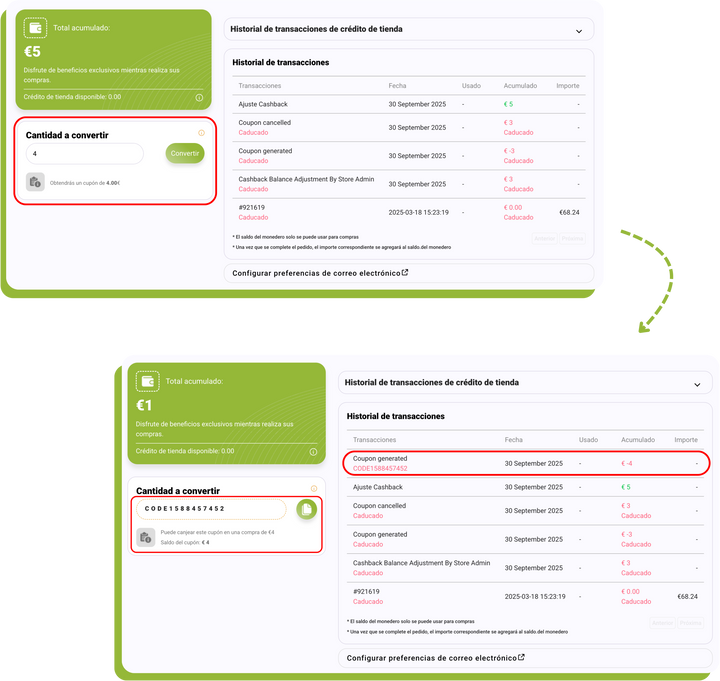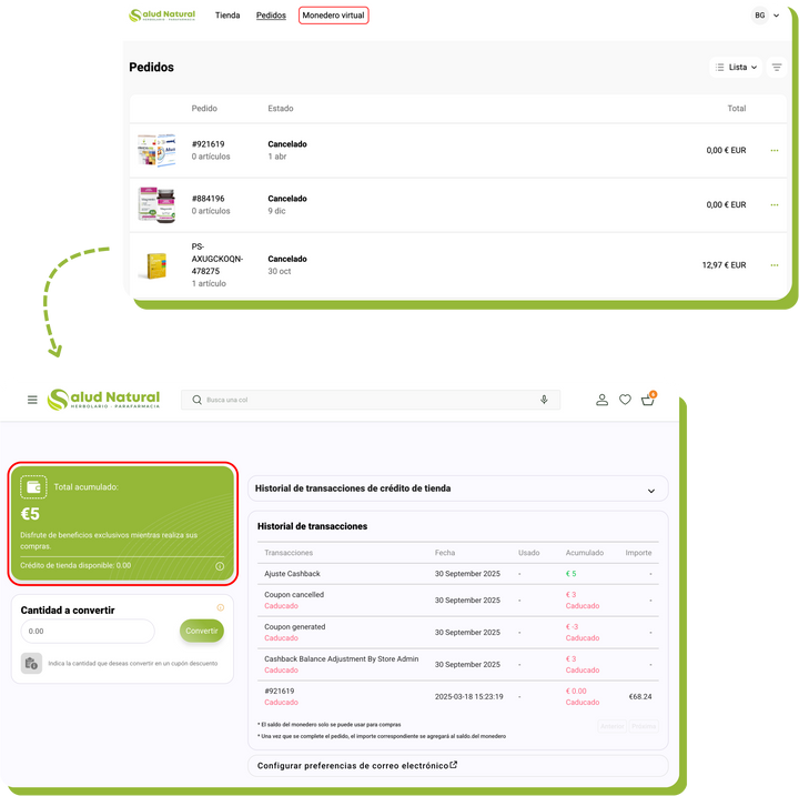 Cada vez que hagas una compra en nuestra tienda online, generaremos un saldo asociado (cashback) a tu cuenta de cliente que podrás utilizar en tus próximas compras.