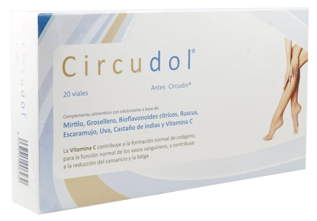 Circudol® es un producto con Arándano, Vid roja, Grosellero negro, Escaramujo, Ruscus aculeatus, Castaño de indias, Vitamina C y Complejo de bioflavonoides cítricos, indicado para los problemas de circulación periférica o de retorno como la pesadez y el dolor de las piernas y los pies, piernas frías, calambres, heridas en las piernas que no llegan a cicatrizar, varices, arañas vasculares, hemorroides, dificultad en el desplazamiento, piernas amoratadas e hinchadas, flebitis, claudicación intermitente, úlceras varicosas, etc.
