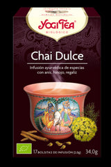 Enamórese de la dulzura natural especiada de Yogi Tea® Chai Dulce. El anís, el hinojo, el regaliz y el clavo se combinan para lograr un sabor deliciosamente misterioso. Para tener los pies en la tierra y no perder el contacto con nuestras almas necesitamos endulzar nuestra vida, puesto que la dulzura representa la tierra. Siéntate y disfruta de una taza naturalmente dulce de Yogi Tea® Chai Dulce. La esencia de esta infusión es: “Echa raíces”.