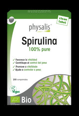Las algas son micro-organismos que se han cultivado y consumido desde hace milenios, siendo una excelente fuente nutritiva. Physalis Spirulina bio, un alga marina unicelular de color verde intenso, favorece la vitalidad y la resistencia natural y contribuye al control del peso. Spirulina se integra de forma ideal en un régimen sano y es indicada especialmente en los deportistas y en las personas que quieren perder peso.
