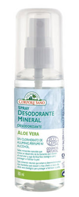 Elaborado con Alumbre natural y Aloe Vera, el desodorante Spray Mineral Corpore Sano dispone de la certifi¬cación Ecocert Cosmos Natural. Su acción astringente permite controlar el efecto de la sudoración en la piel. Su carácter ácido actúa inhibiendo el desarrollo de los microorganismos que se encuentran en la piel y que provocan el mal olor del sudor a causa de la descomposición bacteriana.