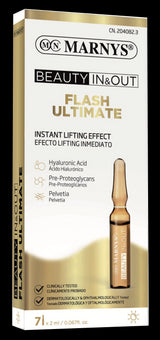 Las ampollas Flash Ultimate están indicadas para actuar rápidamente reforzando las estructuras de sostén en la piel. Ayudan a atenuar las arrugas y líneas de expresión.
