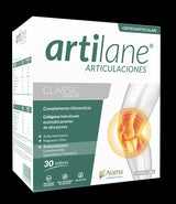Artilane® Classic es un complemento alimenticio a base de Colágeno hidrolizado enzimáticamente de alta pureza, Ácido hialurónico, Magnesio, Zinc y antioxidantes como Coenzima Q10, Licopeno, Quercetina y con Vitamina C que contribuye al mantenimiento de los huesos, músculos y cartílagos en condiciones normales lo que ayuda al bienestar de las articulaciones.