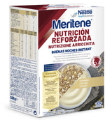 Meritene® Nutrición Reforzada Buenas Noches Instant es un plato principal, a base de cereales, altamente nutritivo y de fácil ingesta. Rico en proteínas con textura adaptada y enriquecido en vitaminas y minerales. Sin sacarosa añadida*. Con edulcorante.