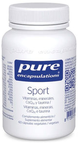 Pure Encapsulations Sport está compuesto por vitaminas, minerales, coenzima Q10 y taurina. Vitamina B12 en su forma activa obtenida por fermentación de la dextrosa del maíz.