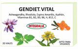 Agua, Extracto de Ashwagandha (Withania somnífera L., Raíz), Extracto de Rhodiola (Rhodiola rosea L., Raíz), Extracto de Espino Amarillo (Hippophae rhamnoides L., Fruto), Extracto de Azafrán (Crocus sativus L., Estigmas), Vitamina C (ácido L-Ascórbico), Vitamina B3 (Niacina), Conservadores (Sorbato potásico y Benzoato sódico), Edulcorante (Sucralosa), Vitamina B2 (Riboflavina), Vitamina B6 (Clorhidrato de piridoxina) Vitamina B1 (Clorhidrato de tiamina), Vitamina H (D-biotina), Vitamina B12 (Cianocobalamina).