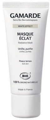La Mascarilla Radiante de Gamarde es un producto ideal para pieles apagadas y/o con manchas marrones (imperfecciones pigmentarias) gracias al complejo aclarante orgánico certificado GWE®, que reduce la producción de melanina responsable de las manchas oscuras. Tu piel es suave, tu tez está unificada y radiante. El resplandor de la piel se revela.