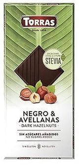 Chocolate Negro con Avellanas con Stevia · Torras · 125 gramos