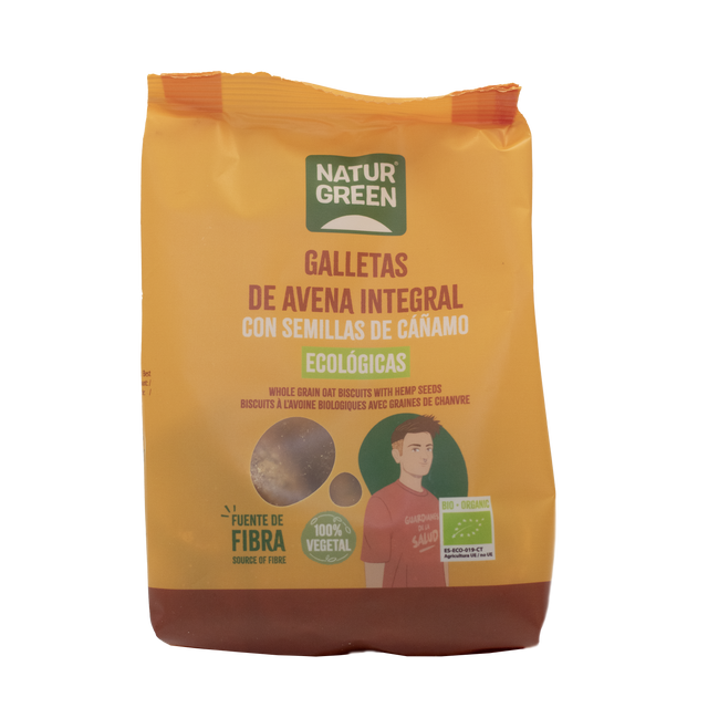 Galletas de Avena Integral con Semillas de Cáñamo Bio · Naturgreen · 140 gramos