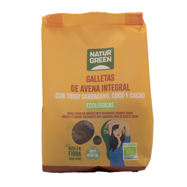Galletas de Avena Integral con Trigo Sarraceno, Coco y Cacao Bio · Naturgreen · 140 gramos