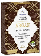 Jabón natural con aceite puro de argán, sándalo y palma-rosa. El Jabón Natural de Argán se ha formulado para el cuidado e higiene de las manos, y zonas sensibles del cuerpo. Puede utilizarse para la higiene e hidratación de las pieles más sensibles y zonas especialmente deshidratadas o que presentan descamación.