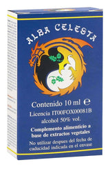 Alba Celesta es un complemento alimenticio a base de principios vegetales. La centella asiática contribuye a la funcionalidad de la microcirculación (piernas pesadas), a la memoria y funciones cognitivas. El anís estrellado, el cardamomo, el limón y el anís verde contribuyen a la función digestiva, a la regularidad de la motilidad gastrointestinal y a la eliminación de los gases.