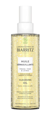 La deliciosa textura en óleo del Aceite facial desmaquillante cara, ojos y labios de Laboratoires de Biarritz se convierte en leche al contacto con el agua. De este modo, proporciona un suave desmaquillado del rostro.