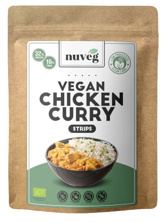 El Pollo al Curry Eco de Nuveg es una sencilla formulación de vegetales deshidratados (texturizado y en polvo) que, tras hidratar y mezclar, se consigue un sustitutivo de la carne con su sabor y textura idóneas para disfrutar de una comida extremadamente saludable, de una forma rápida y fácil.