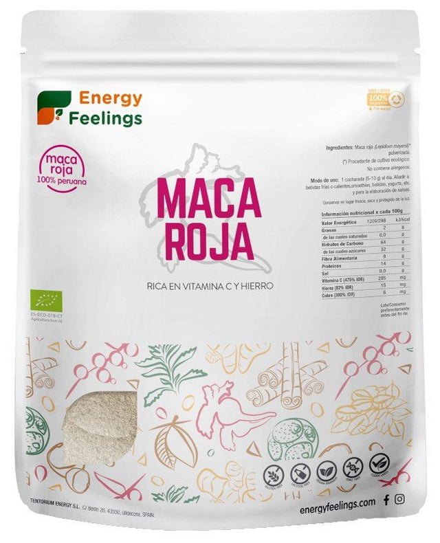 La raíz de maca roja eco de Energy Feelings posee un sabor más suave y dulce que el resto de las variedades, lo que la hace organolépticamente la más agradable de las tres. Algunas personas incluso la utilizan para endulzar ciertas preparaciones culinarias.