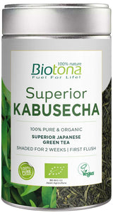 Té Superior Kabusecha de Biotona es un excelente té verde con un aroma suave, ligeramente amargo y un sutil sabor “umami”. Se produce exclusivamente a partir de hojas jóvenes de té que, según la tradición, se cosechan a principios de mayo (en la primera cosecha) después de un sombreado de arbustos durante 2 semanas.