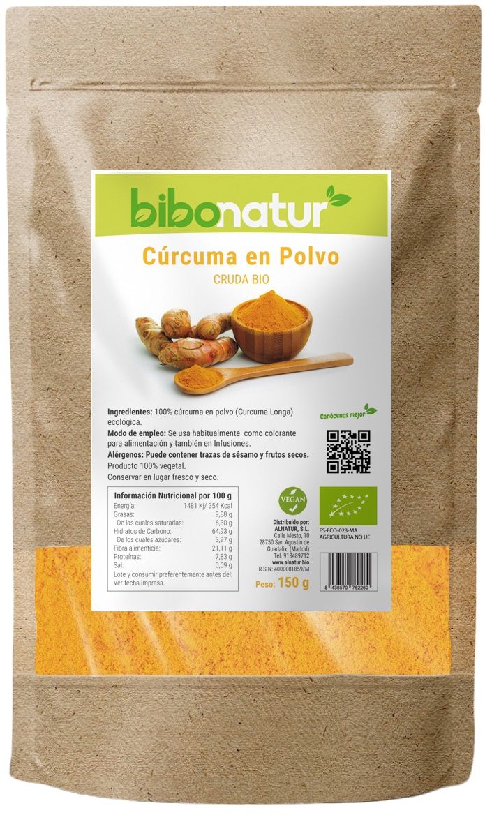 Cúrcuma en Polvo Cruda Bio · Bibonatur · 150 gramos
