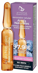 Ampolla AHA's Naturales de Armonia con Alfahidroxiácidos que ejercen un peeling regenerador sobre la piel eliminando la capa de células muertas y penetrando de forma mucho más profunda en la dermis.