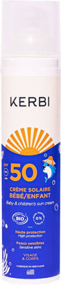 El Protector Solar Infantil SPF50 de Kerbi protege la piel sensible eficazmente contra los efectos nocivos del sol. Formulada exclusivamente con filtro mineral, certificado BIO para una óptima protección frente a los rayos UVA y UVB.