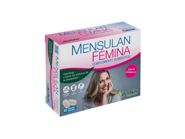 Mensulan Femina nos aporta isoflavonas de soja, estas tienen en el organismo una acción parecida a los estrógenos y por tanto reducen los síntomas que la menopausia provoca. Además está complementado con cola de caballo, salvia, onagra y borraja para ayudar a aliviar los síntomas.