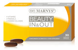 Este producto combina colágeno marino, vitaminas, minerales y los aceites de oliva, borraja y salmón. El complemento alimenticio Beauty In & Out contiene zinc y biotina que contribuyen al mantenimiento del cabello en condiciones normales. Además el contenido en zinc contribuye al mantenimiento de las uñas en condiciones normales, y el contenido de Beauty In & Out en zinc, biotina, niacina (nicotinamida) y riboflavina contribuyen al mantenimiento de la piel en condiciones normales.