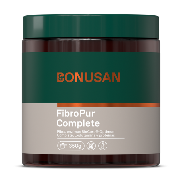 FibroPur Complete es la fórmula más completa que tenemos dentro de la gama FibroPur de Bonusan. El polvo contiene las fibras fermentables inulina, FOS y dextrina de maíz. Aparte de esta combinación de fibras de cadena corta y larga, Fibropur Complete también contiene L-glutamina, proteínas y 9 enzimas diferentes, incluyendo la lactasa, que es una enzima que mejora la digestión de la lactosa en las personas con problemas para digerir la lactosa. Su completa composición hace que este producto sea una valiosa solución total. La combinación única de ingredientes garantiza una biodisponibilidad óptima de los mismos.