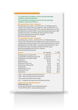 Almidón de arroz, ácido L-ascórbico (Vitamina C), Bifidobacterium longum ES1, betacarotenos, acetato DL-alfa-tocoferilo (Vitamina E), Lactobacillus rhamnosus CBT LR5, nicotinamida (niacina, Vitamina B3), Bifidobacterium bifidum BB47, clorhidrato de piridoxina (Vitamina B6), riboflavina (Vitamina B2), clorhidrato de tiamina (Vitamina B1), ácido pteroilmonoglutámico (Ácido fólico), cápsula (hidroxipropilmetilcelulosa).
