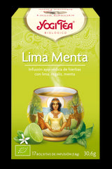 Yogi Tea® Menta Lime despeja su mente como una brisa fresca en un día caluroso. Permite que sus pensamientos se abran y eleva su espíritu. La perfecta combinación de menta picante y limón fresco limpia y tiene un sabor refrescante. Esta fórmula deliciosa le recordará las nuevas dimensiones de la conciencia y el bienestar que puede experimentar durante una meditación en las primeras horas del día. Yogi Tea® Menta Lime se puede disfrutar caliente o frío.