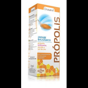 Propolis Jarabe Balsámico es un complemento alimenticio rico en extractos vegetales y propolis. Los extractos vegetales utilizados son: Amapola roja, gordolobo, malvavisco helicriso, tomillo, pino e hinojo. Se ha utilizado un propolis de primera calidad. El propolis es una sustancia elaborada por las abejas, a partir de componentes resinosas de las plantas. El propolis está formado por resinas, bálsamos, aceites esenciales y materia orgánica, entre las que destacan los flavonoides como la galangina y la quercitina.