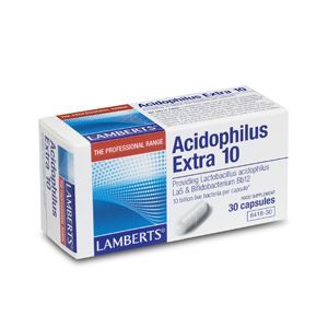 Acidophilus Extra 10 de Lamberts es uno de los probióticos más potentes del mercado. Cada cápsula contiene 10.000 millones de bacterias beneficiosas (en el momento de fabricación), con la ventaja de que sólo se necesita tomar una cápsula diaria. Las dos especies de bacterias que se hallan en este producto (Lactobacillus acidophilus La-5 y las Bifidobacterium Bb 12) se han utilizado en más de 200 estudios clínicos y garantizan su máxima potencia.