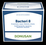 Bonusan Bacteri 8 contiene una combinación equilibrada de 8 cepas bacterianas. Todas las cepas están presentes en el microbioma humano de forma natural. Este producto de amplio espectro se ha ideado especialmente para adultos, por lo que la diversidad de las cepas coincide con la diversidad de las cepas del intestino. Si necesita un espectro aún más amplio de cepas bacterianas, la gama Bacteri incluye nuestro producto experto definitivo: el Bacteri 17 Expert Resilience.