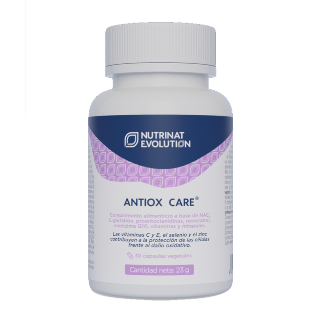 Antiox Care® de Nutrinat Evolution es una innovadora fórmula sinérgica de varios antioxidantes que ofrece una defensa frente al estrés oxidativo, actuando en diferentes vías para neutralizar radicales libres y reforzar la protección celular.