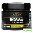 BCAA 2:1:1 Instant de Crown Sport Nutrition Sport Nutrition es un polvo formado por leucina, isoleucina y valina. Es muy fácil de tomar debido a su disolución instantánea y su sabor agradable a limón. Estos aminoácidos esenciales son, aproximadamente, un tercio de la proteína muscular del músculo esquelético. Asimismo, son aminoácidos esenciales porque el ser humano no puede producirlos y necesitan ser ingeridos a través de la dieta.