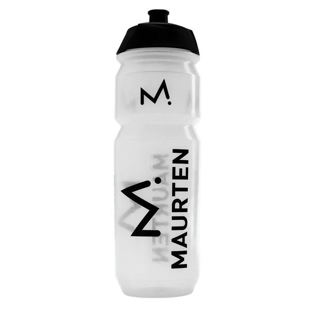Bidón deportivo de 500 ml con instrucciones para mezclar Maurten Drink Mix. Se adapta a los portabidones estándar de las bicicletas.
