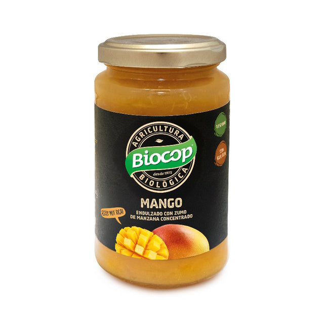 Mango 55%, *zumo concentrado de manzana, *puré de manzana, gelificante: pectina, regulador de la acidez: ácido cítrico. (*) De agricultura biológica.