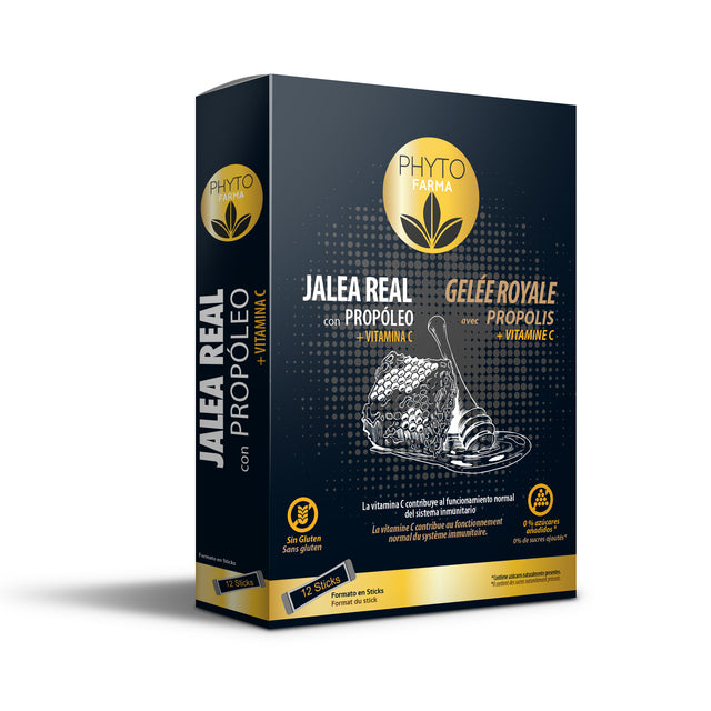 Jalea Real con Propóleo + Vitamina C de Phytofarma es un complemento alimenticio que contribuye al funcionamiento normal del sistema inmunitario.