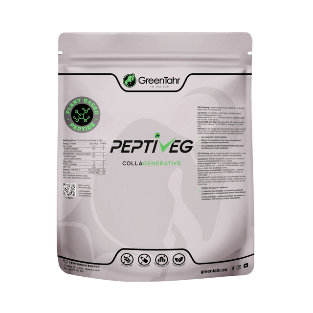 PeptiVeg: Precursor de Colágeno es un producto formulado con péptidos de guisante, Camu Camu y Zinc, ideales para fortalecer articulaciones, huesos y músculos. Favorece la síntesis de proteínas, mejora la recuperación post-entrenamiento y ayuda a reducir el estrés oxidativo. El Peptiveg ayuda a la prevención de dolores y lesiones articulares. 100% vegano, sin gluten ni azúcares añadidos, perfecto para potenciar tu rendimiento.