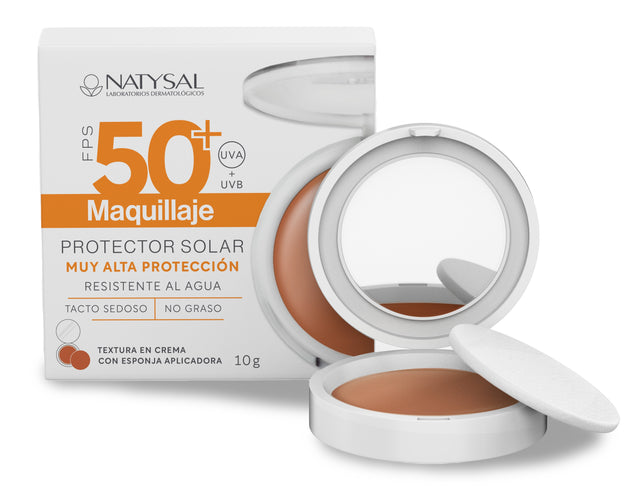 Protector Solar Maquillaje SPF50 de Natysal es un producto que combina los beneficios de un protector solar de alta protección con el acabado estético de un maquillaje compacto.